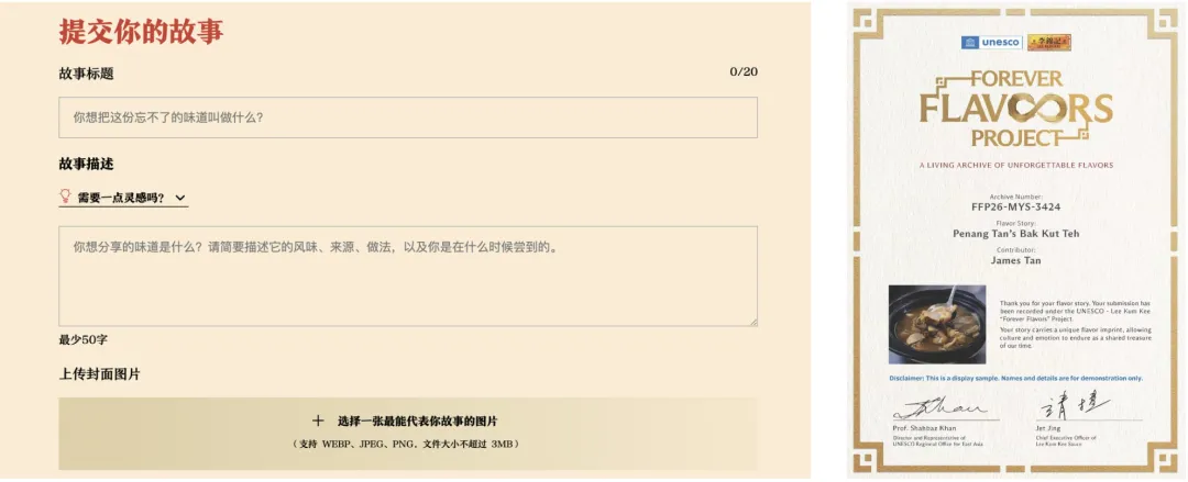 特别说明:所有入选的味道故事,将获得由联合国教科文组织认证的项目证书,并拥有独一无二的档案编号。